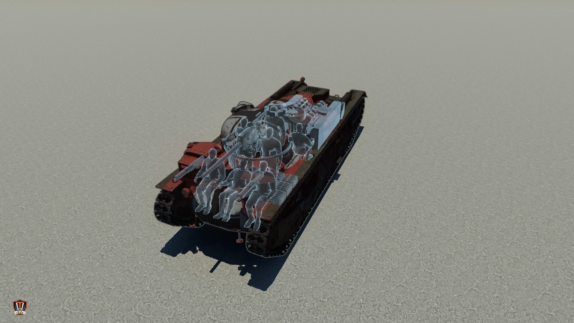 A 8 legénységi tag talán üdvözítőnek tűnhet azonban még maxra húzott legénységi életerő (HP) esetén is 1-2 bekapott találat után mind meghal, így ez sem javítja a harckocsi tűrőképességét.