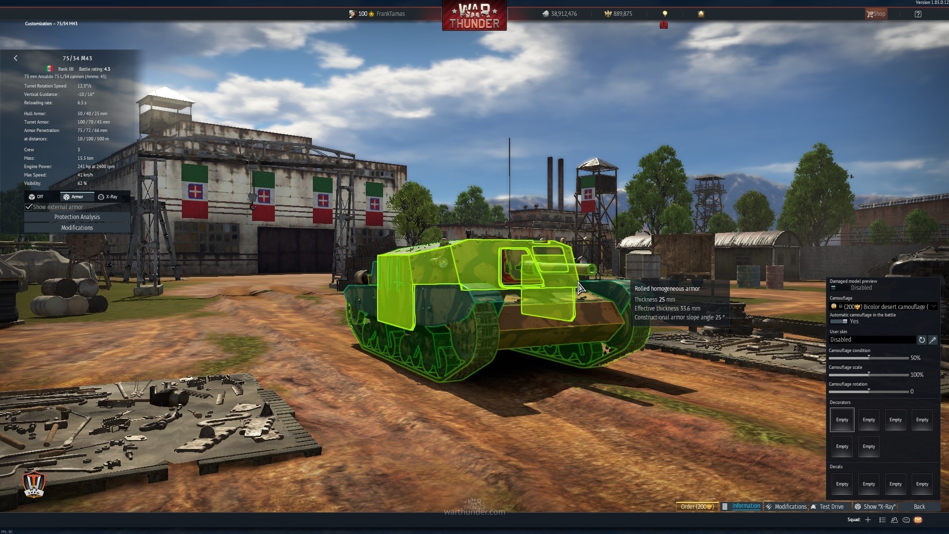 Az adatai olasz harckocsiknál megszokottan erősen eltérnek a valóságostól, így mind átütésében, mind páncélvédettségében találhatunk kivetni valót. Előbbinél kis vigasz, hogy a lehetőségünk van a német HEAT lövedék használatára, míg páncélzatunk, ha korlátozottan is, de még így is használható.