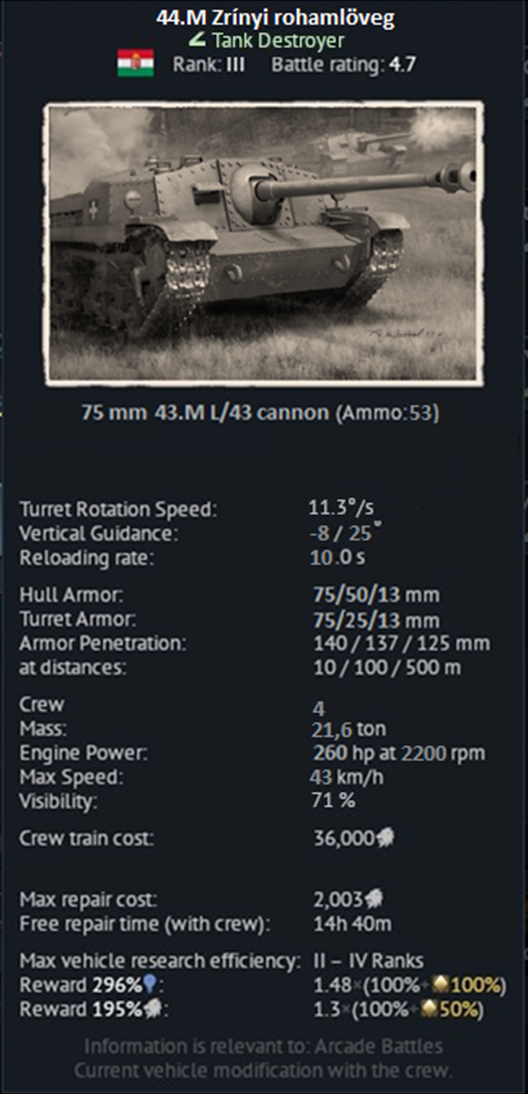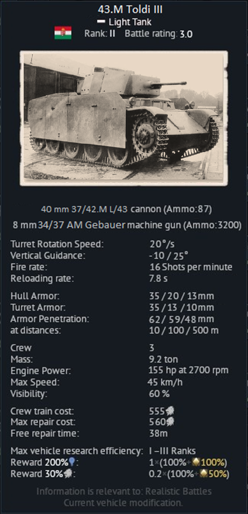 - Csinálj egy teljes hiteles adatkártyát egy harcjármüröl, legyen minél valósághübb (WT szempontból)