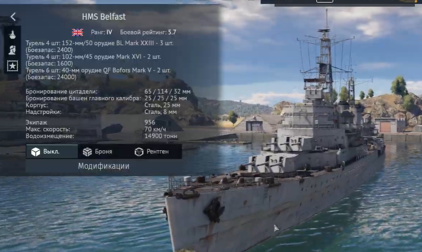 - Town osztályú, HMS Belfast cirkáló (Tier IV prémium)