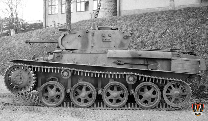 A német helyett, egy gyengébb, 142 lóerős, hazai gyártású Scania-Vabis 6 hengeres benzinmotort szereltek bele. A tömeg, főleg az ágyú miatt, jelentősen nőtt 9 tonnára, ami a gyengébb motorral összesítve súlyosan csökkentette a harckocsi mobilitását. A végsebessége maradt 45 km/h, de ezt sokkal lassabban érte el.