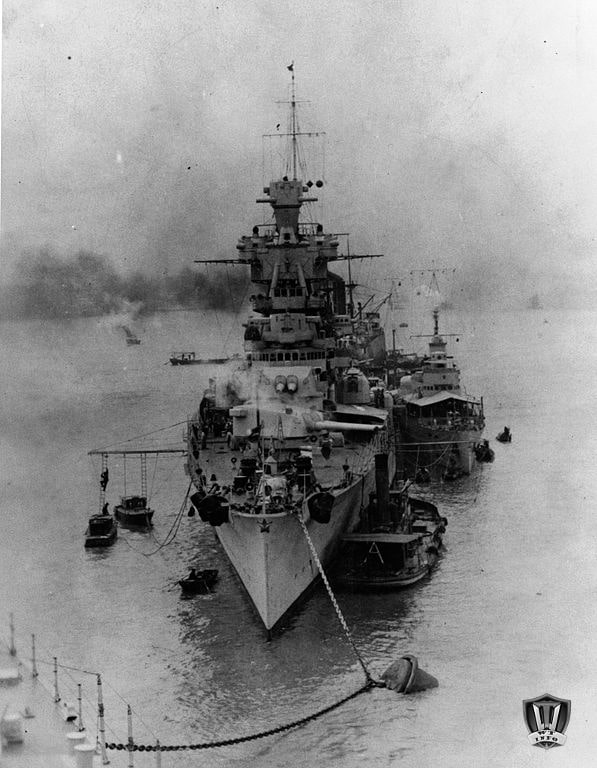 Itt ütközött ki a vékony páncélzat hátránya. A 533 mm-es angol torpedók úgy ették át magukat a külső 70 mm-es lemezen, mint kés a vajon. A robbanás a hajó külső burkán belül pedig végzetes károkat okozott.