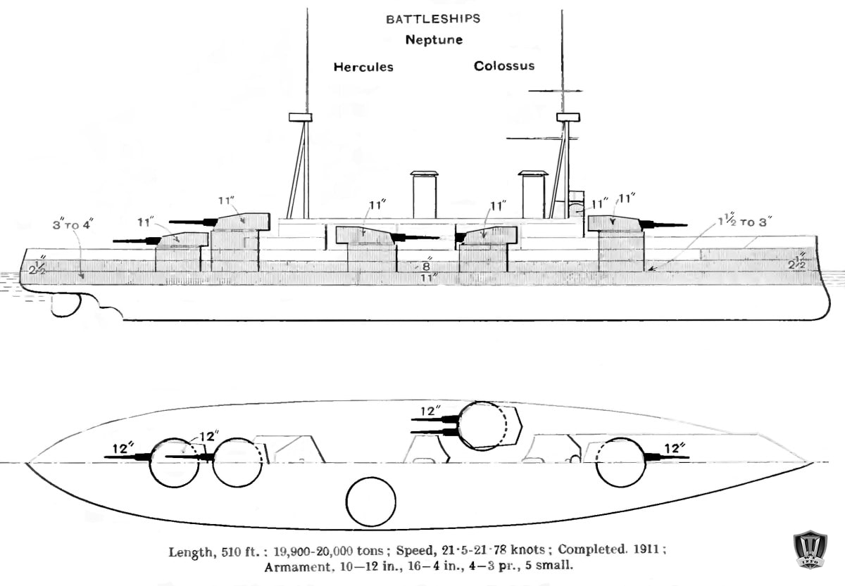 A (fejlesztett Neptune) csatahajók, ugyan pár kisebb részletet tekintve megegyeztek, ennek ellenére új “Colossus” osztálynevet kaptak.